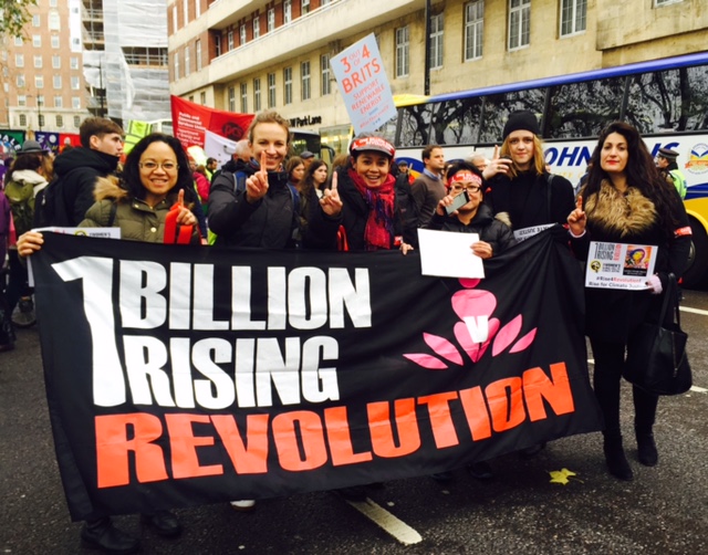 OBR Director Monique Wilson and One Billion Rising activists marching at London People’s Climate March. Dignity respect and integrity for Mother Earth is dignity respect and integrity for women and girls!