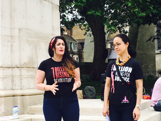 Sunday’s event was one of celebration, defiance and solidarity with speakers including Unite assistant general secretary, Diana Holland, Sean Bamford (Policy Officer European Union and International Relations of Trade Union Congress – TUC), Monique Wilson (One Billion Rising Global Director), Tanya Anastasiadis and Thea Tadiar Everley (One Billion Rising UK coordinators), Fiona MacTaggart (Labour MP for Slough), and Marissa Begonia (J4DW Coordinator). Moving testimonies on the lives of domestic workers were led by J4DW members Saroj Toppo (Chairperson J4DW UK), Rowena Rimpas and Noani Mukromin. Eliza Lizardo led members of J4DW in a rousing song and the event culminated with the energized dancing and call to Rise for Revolution – with the “Break The Chain” dance anthem of One Billion Rising. Moving tributes were also made for murdered Labour MP Jo Cox, who stood against all forms of social exclusion, and who fought against discrimination and oppression and exploitation in her political work.