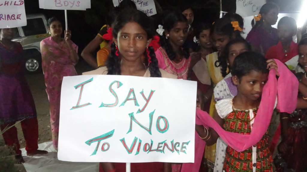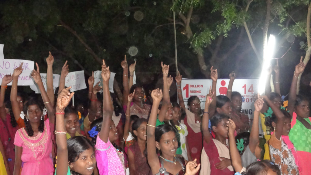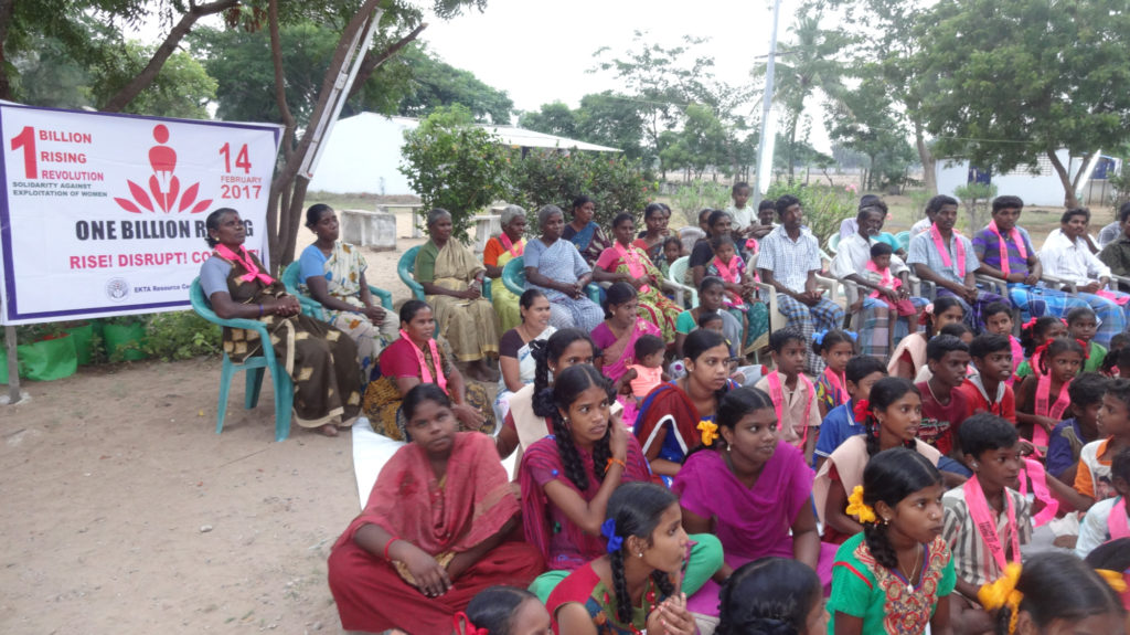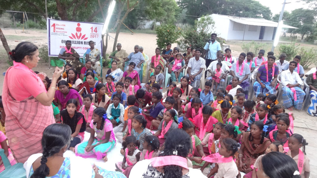 Their first launch was organized on the 24th of October at Nambikkai Centre, Killai, which is situated near Chidambaram, Cuddalore District with the surrounding tribal population. Nearly 80 persons comprising of children, youth, men, and women from the nearby village of Kalaigner Nagar participated. The 2017 One Billion Rising campaign and its theme of “Solidarity Against Exploitation of Women” was explained to the participants. A discussion was held on the various issues faced by the people of the village. Alcoholism, early marriage, poverty, and dropping out of school for livelihood purposes were identified as the primary causes for the increased violence against women and girl children.