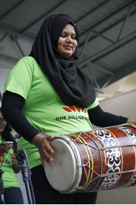 This year, many cities in Maldives rose against violence against women. In Male’ city, a Rising was held on 17th February 2017. The event began with a bicycle ride on the streets of Male’ followed by a stage show at Social Center. The stage show included performances by 3 women singers from the Maldives Music and Arts Center and releasing of a song on promoting positive masculinity traits developed by Hope for Women. The stage show also included a performance by the first and only women’s Boduberu group in the Maldives. In additional to this, the OBR dance was also performed at the event and a hand printing activity to show support for ending violence against women was conducted. During the event, pamphlets were also distributed to visitors.