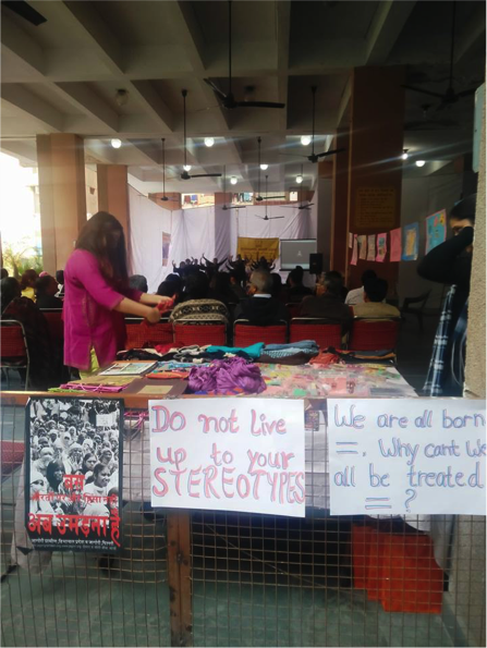 On 3rd February, Shivaji College, Sangat and Society for Labour and Development rose to discuss the rights of women workers. Five women who are workers at various garment factories in the NCR region were present to share their experiences with the more than 200 students who were present at the gathering. The women spoke of issues of sexual harassment in the workplace, the absence of social security, no workplace safety, low wages and others and urged students to think about where their clothes come from and at what cost.