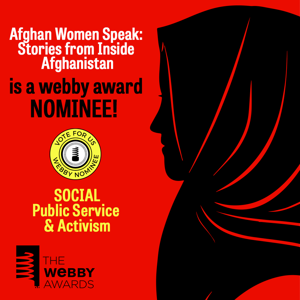 Our V-Day series Afghan Women Speak: Stories From Inside Afghanistan has been chosen as a Nominee for the 29th Annual Webby Awards in the General Social – Public Service & Activism category. Webby Awards are selected by the International Academy of Digital Arts and Sciences. In November, the series won two Anthem awards in the Education, Arts & Culture category.