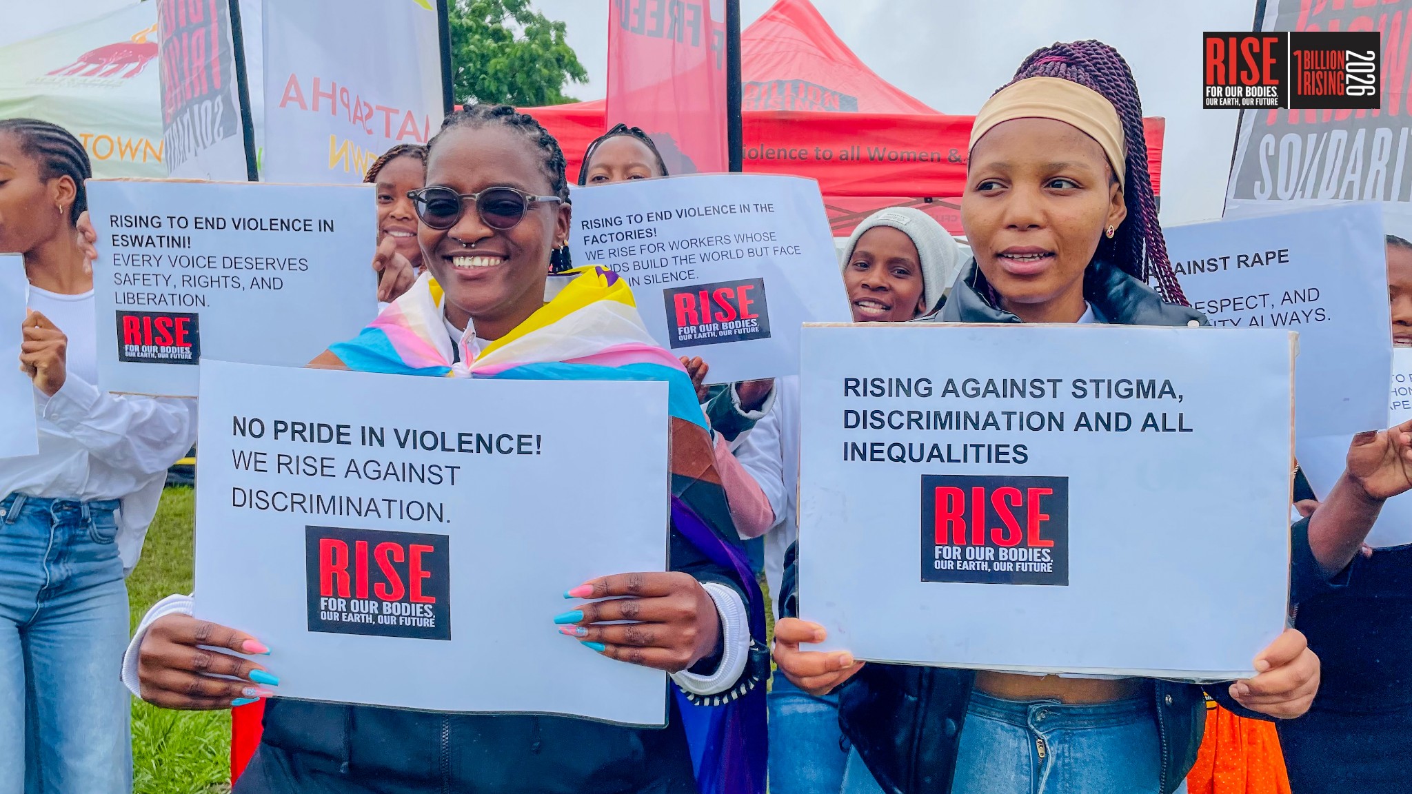 During our #1BillionRising street and factory campaign, with partners we stood together at Union Market in Matsapha, raising our voices for change, equality, and freedom for factory workers.