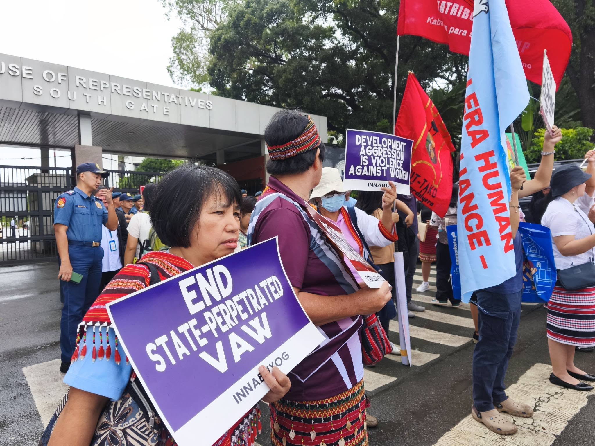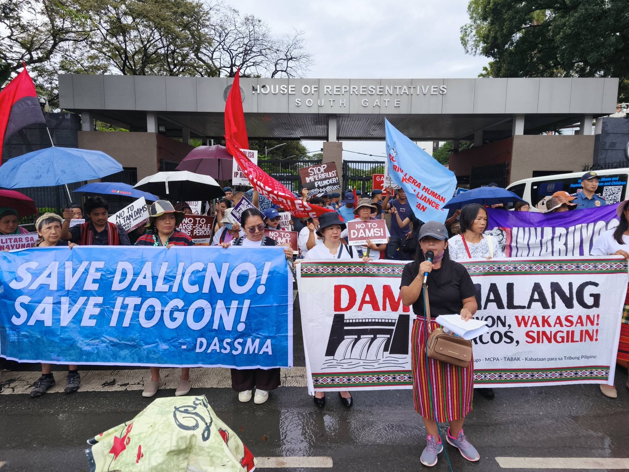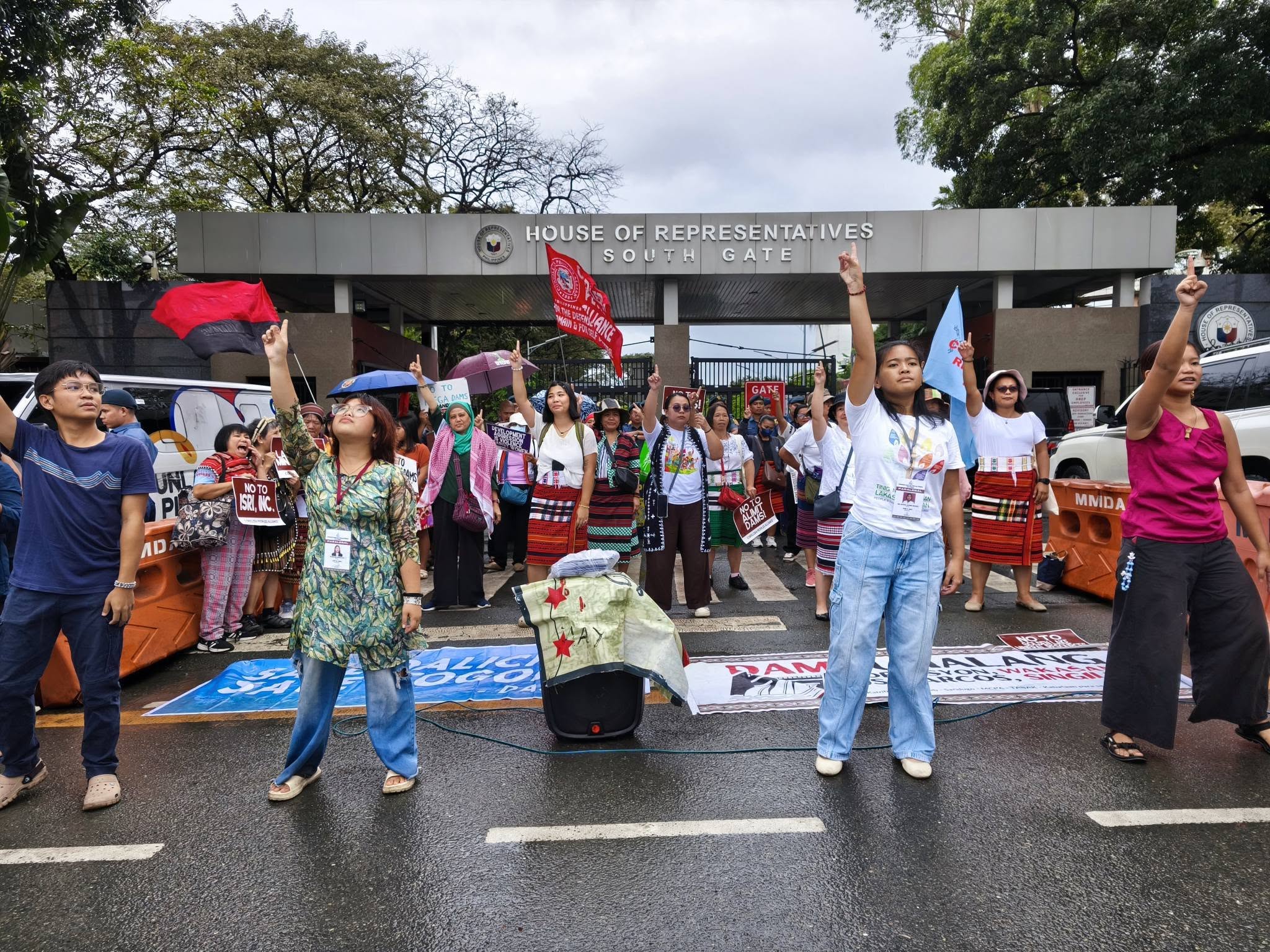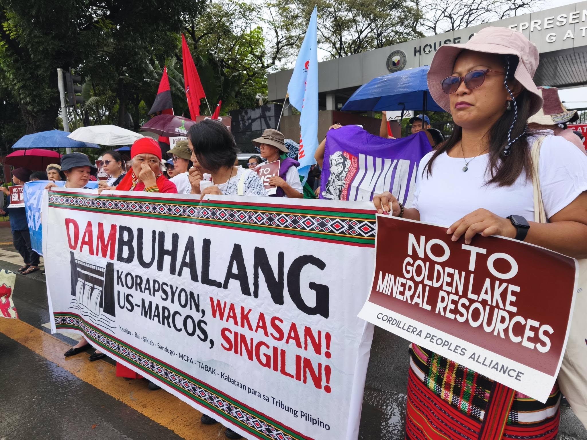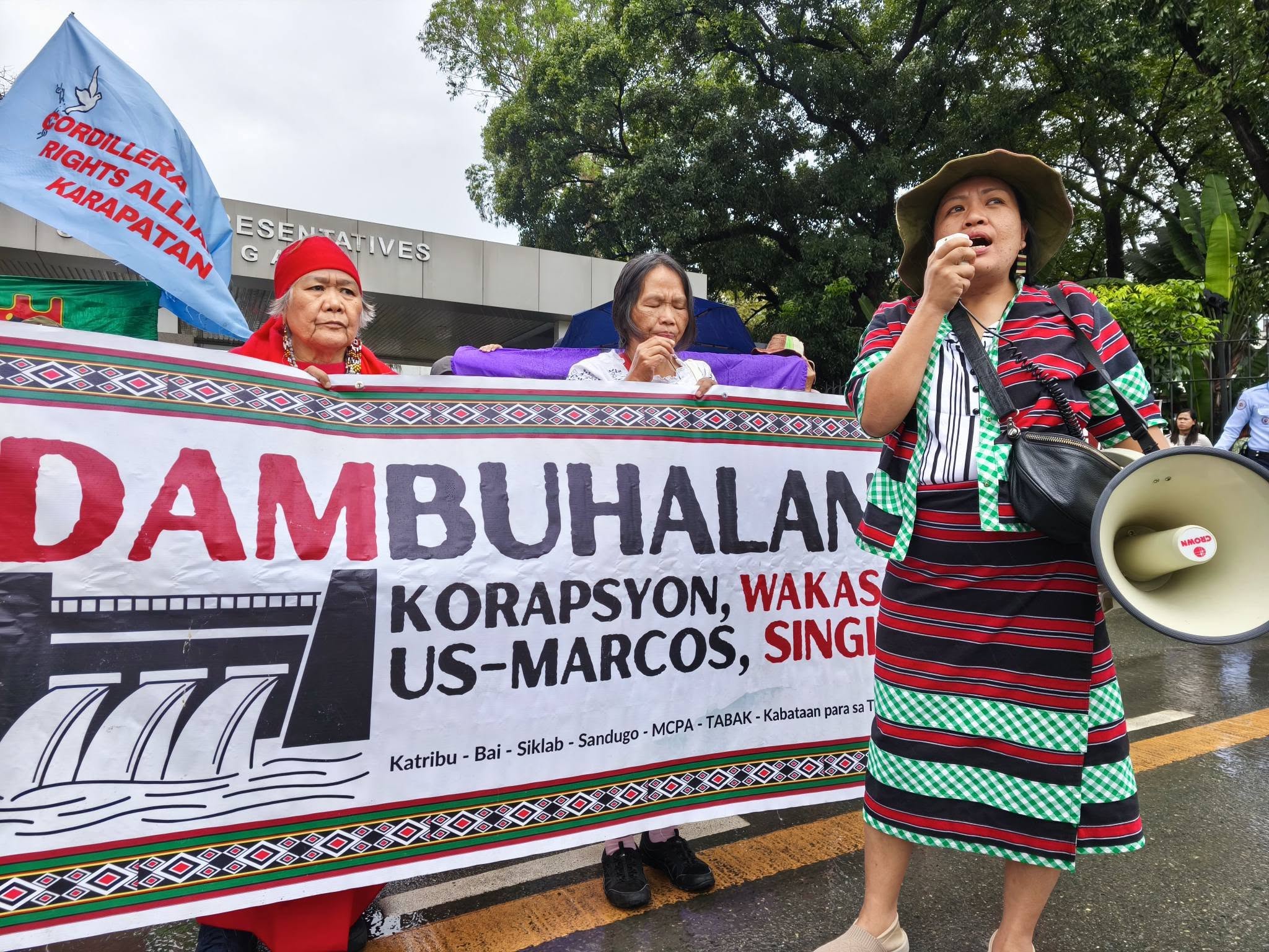 Indigenous people from the Cordillera protest at the House of Representatives against corruption and development aggression on their ancestral lands