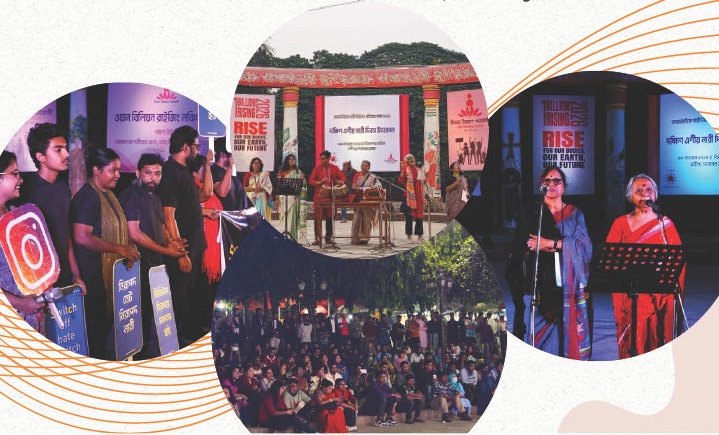 One Billion Rising Bangladesh was launched on 30 November at Rabindra Shorobor, coinciding with South Asian Women’s Day and forming an important part of the 16 Days of Activism. Under the theme “Rise for Our Bodies, Our Earth, Our Future,” the campaign poem was translated into Bangla and launched through an open program of dance, music, drama, and poetry reflecting women’s rights, bodily autonomy, environmental justice, and the future of communities. The event brought together around one thousand people, along with many NGOs and like-minded organizations, standing united for a future free from violence, exploitation, and environmental destruction.