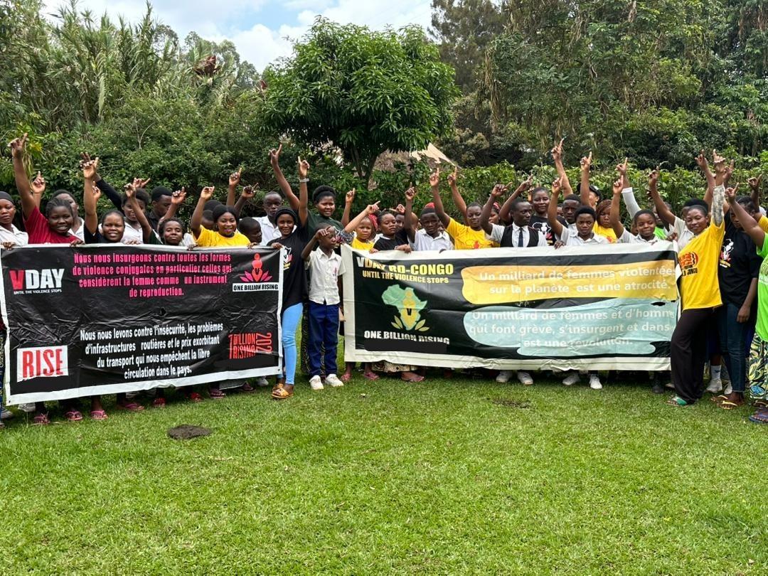 Gathered at the City of Joy on 1 December, secondary school pupils, residents, and staff rose for our bodies, our earth, and our future, voicing women’s concerns and imagining a future with no rape, plunder of Congo minerals, hunger, women’s exploitation, misogyny, and lack of potable water. School boys and girls gathered to talk about their bodies and their future, learning to honor, cherish, and protect their bodies as their homes, and to treat the bodies of their brothers and sisters with respect and dignity. Discussions about our earth called for connection with the elements of nature and recognition that what we eat and what we breathe comes from Mother Earth, shaping a future of eco-friendly behavior, ambassadors of the earth, and societies free of violence. The risers danced to drumbeats to make connections, support one another, gain new energy, and celebrate the City of Joy One Billion Rising dance. From today on, the City of Joy has paved the way for the One Billion Rising campaign targeting youth and graduates, with actions planned in schools, villages, churches, and communities.