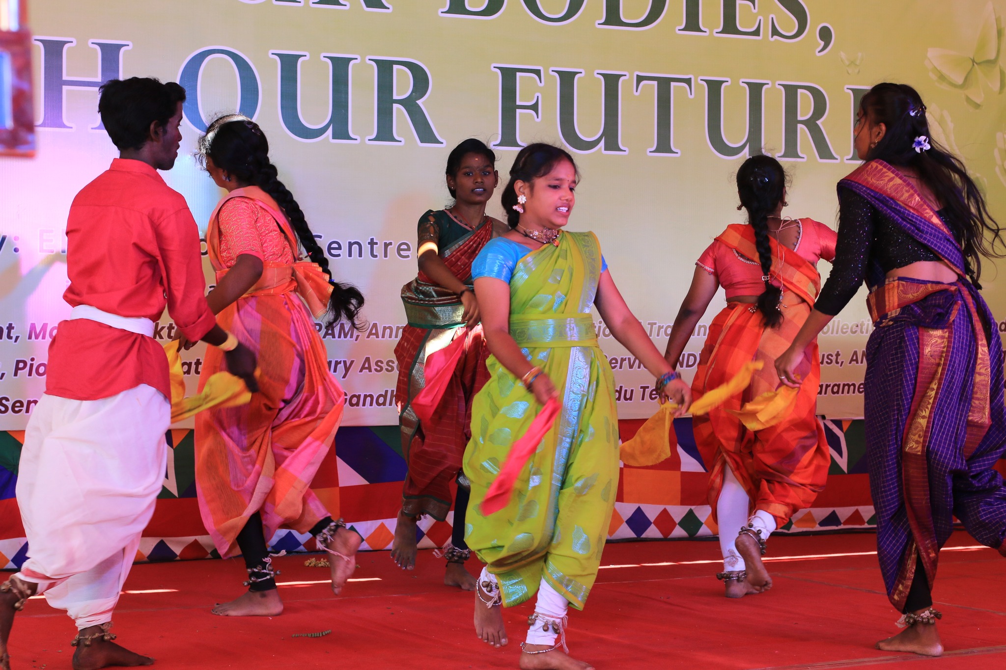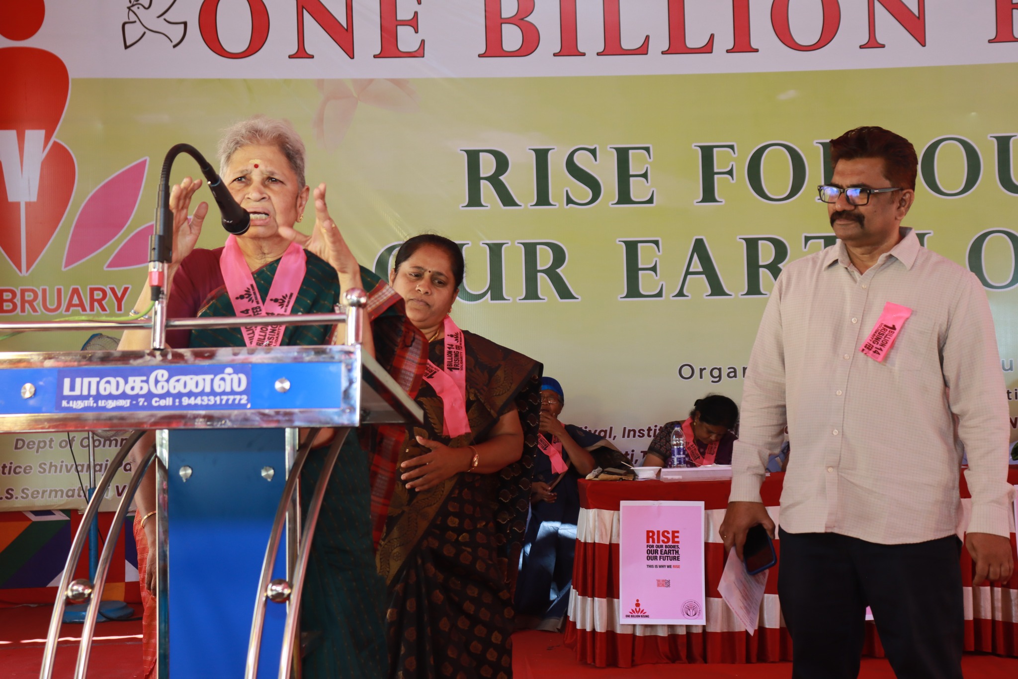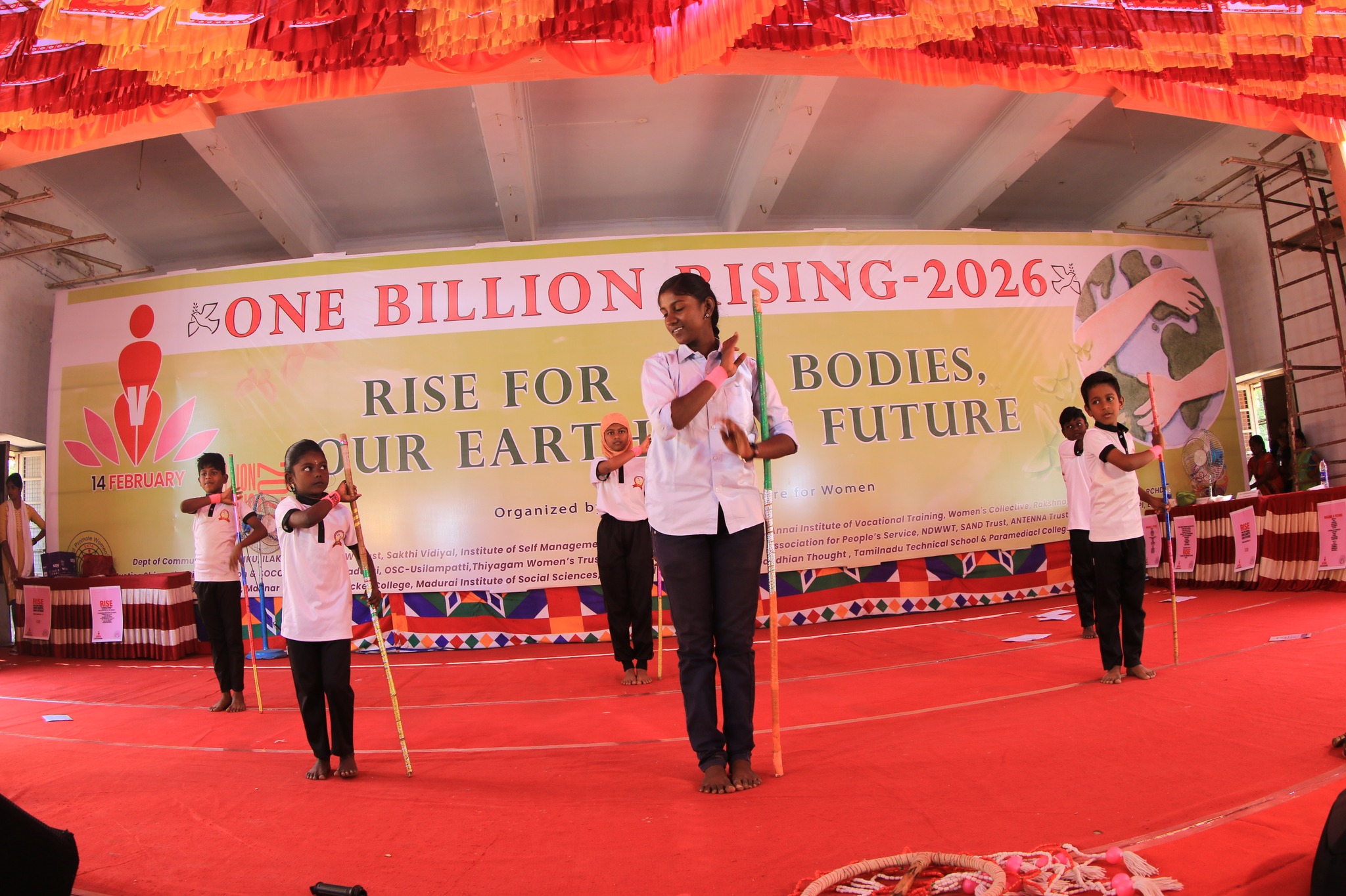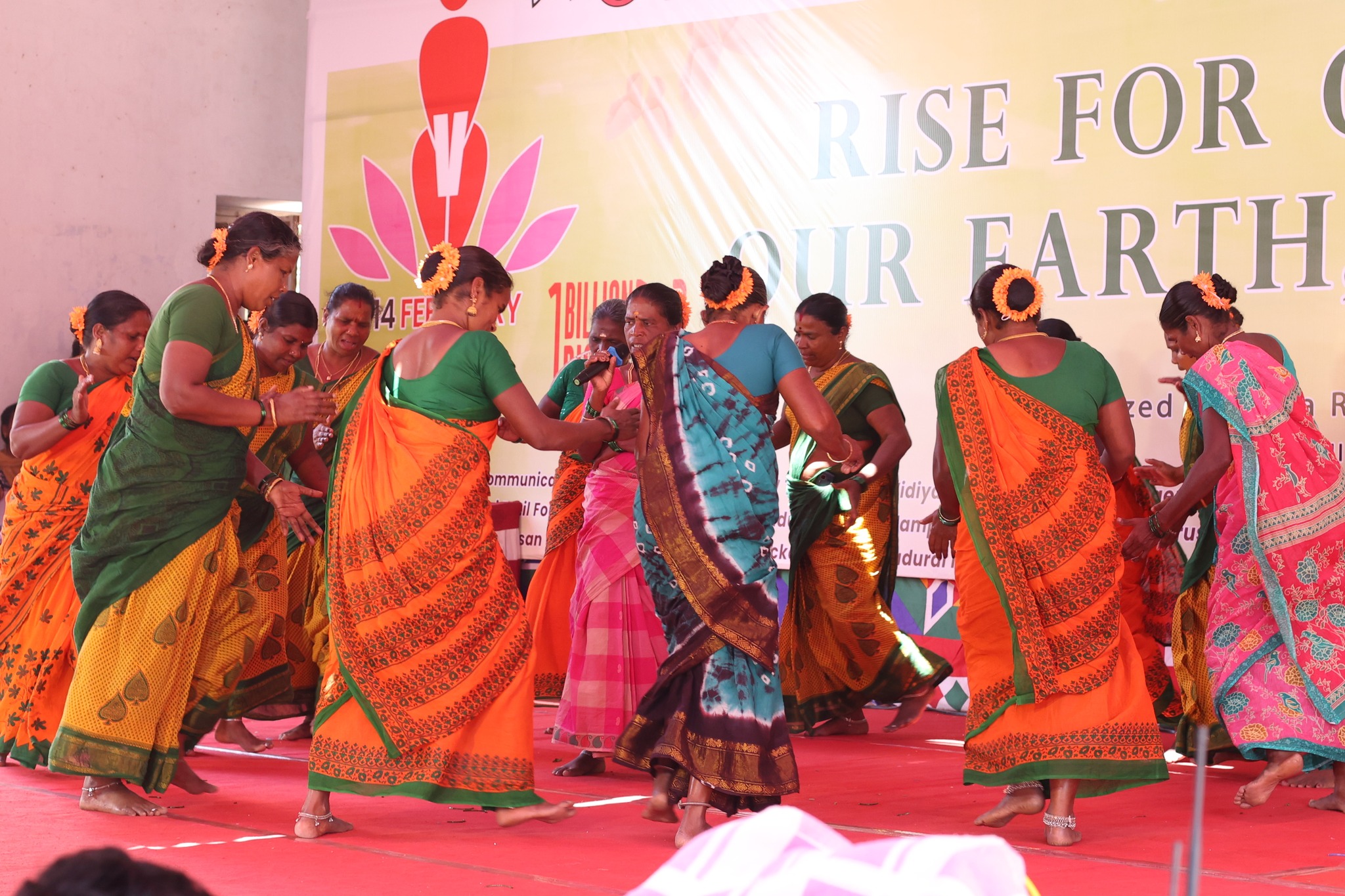 “The One Billion Rising Programme at the Gandhi Memorial Museum, Madurai became a vibrant platform where participants expressed the theme “Rise for Our Bodies, Our Earth & Our Future” through powerful stage performances. Women’s organizations, colleges, schools, and NGOs presented inspiring dance performances, songs, poetry recitations, dramas, and skits, each carrying strong messages on women’s empowerment, bodily autonomy, and social justice. The performances highlighted the struggles faced by women, the need to break silence against violence, and the importance of creating a safe and equal environment. The programme reflected unity and strength, showing how art and cultural expression can become a voice for change and a call for a violence-free and sustainable future.”