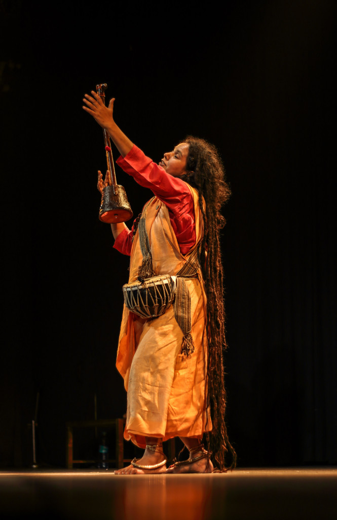For Parvathy, baul singing has been an intrinsic part of her life and her identity although she did not undertake any formal training in the style and is mostly self-taught. Talking about the magic of baul she said, “It is meditation in motion because we sing, dance and play the instruments all at the same time in perfect harmony. When the heart and soul are soaked in musical devotion and the body is in continuous motion, one enters a meditative state, still and silent.” Naturally, when she performed in front of a huge crowd everyone appeared to be awash in the sense of calm she exuded.