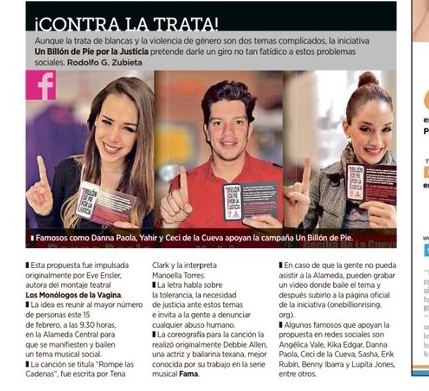 Peruvian Actor, One Billion Rising Global Coordinator and V-Man extordinaire Jason Day wrote a moving letter to Eve Ensler, creator of One Billion Rising and published it with Diario La República in spanish. Below is a translation of the letter. Read the original article can be read HERE! Dear Eve, I have seen your…