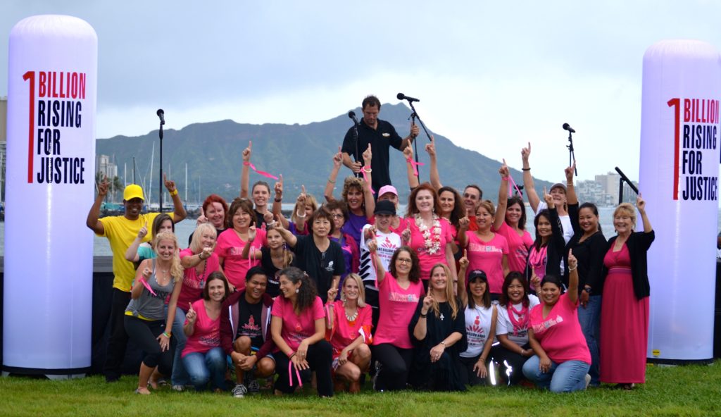 For more information on the One Billion Rising Hawaii visit their Facebook page HERE The Governor of the State of Hawaii who presented me with a proclamation declaring 2/14/14 One Billion Rising Honolulu Day. Part of the group rising at the beginning of the event