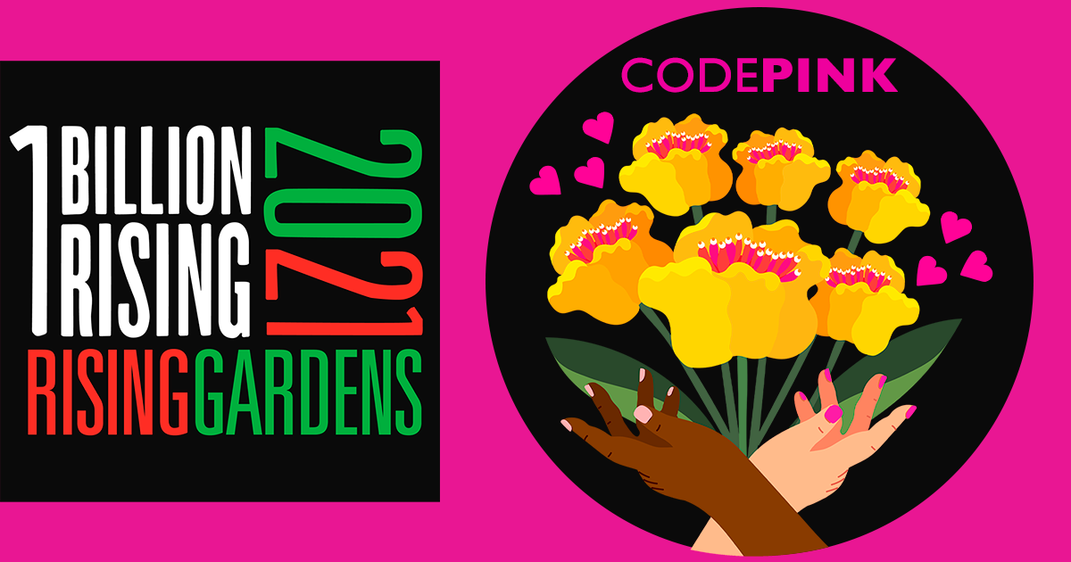 Join CODEPINK in celebrating One Billion Rising Gardens. We will be hosting a meeting with wonderful peace and environmental activists across the world to celebrate the Earth and people. We will hear from many voices and then be able to share our own stories. Jodie Evans will be facilitating this regenerative event featuring Severine, Rupa Marya, Konda Mason, Kelly Curry and more. RSVP at https://www.codepink.org/022021 get the Zoom link join us Saturday, February 20th at 1 PM PT/4 PM ET.